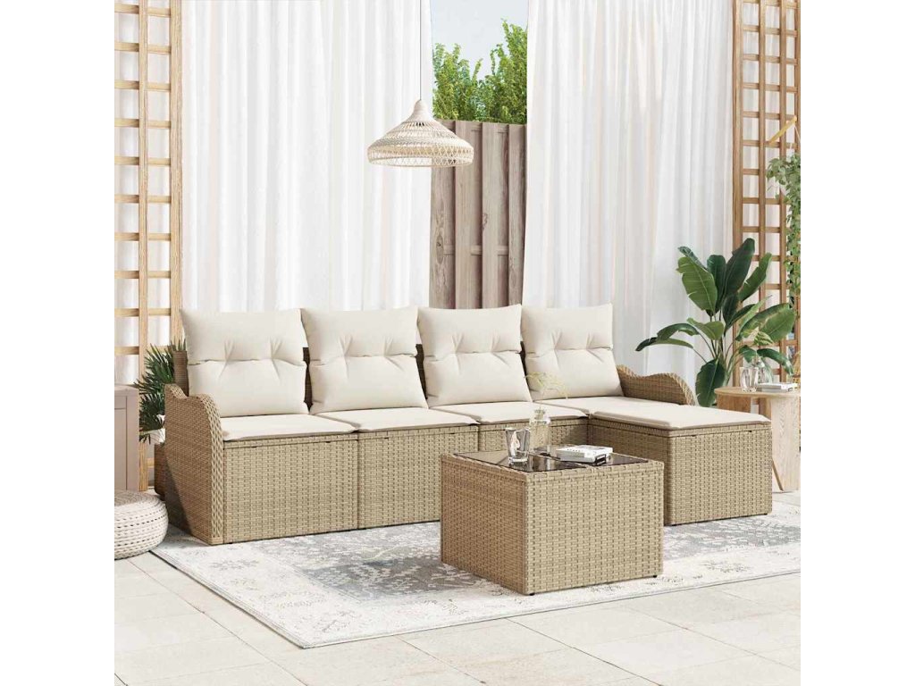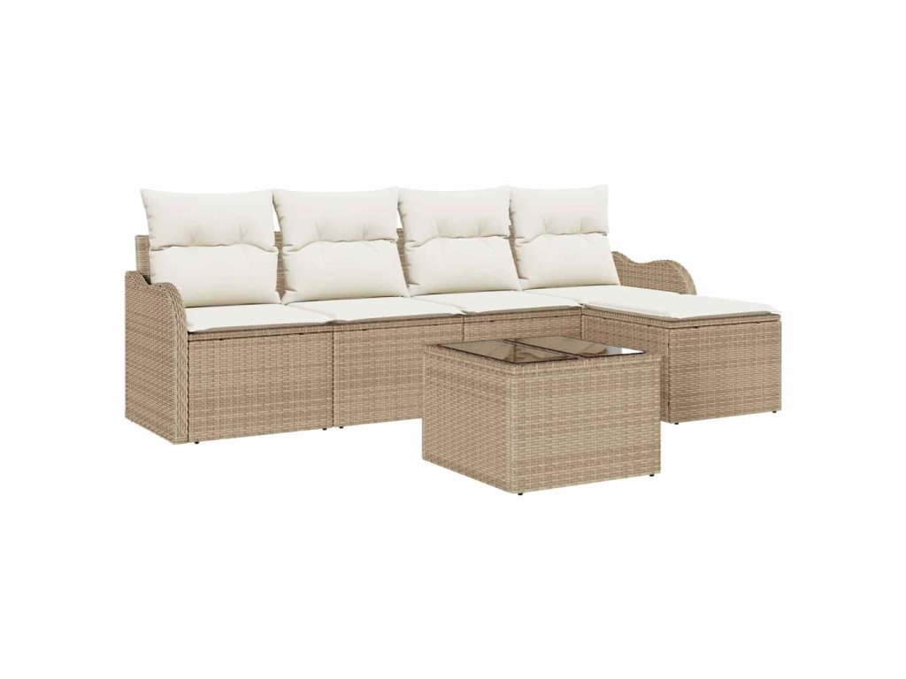 Sada zahradních pohovek s polštářem 6 pcs Hnědá Poly ratan 3354340