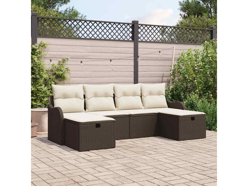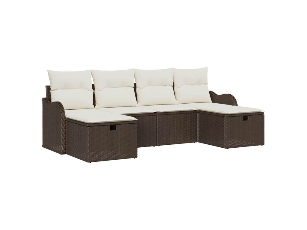 Sada zahradních pohovek s polštářem 6 pcs Hnědá Poly ratan 3360349