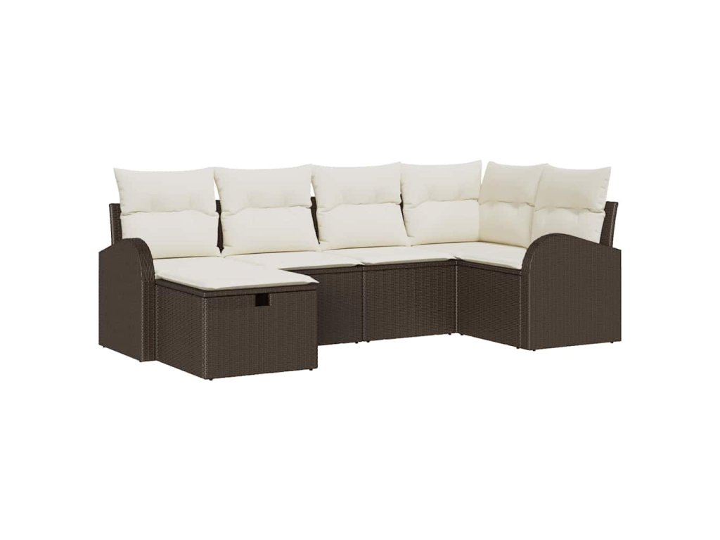 Sada zahradních pohovek s polštářem 6 pcs Hnědá Poly ratan 3360409