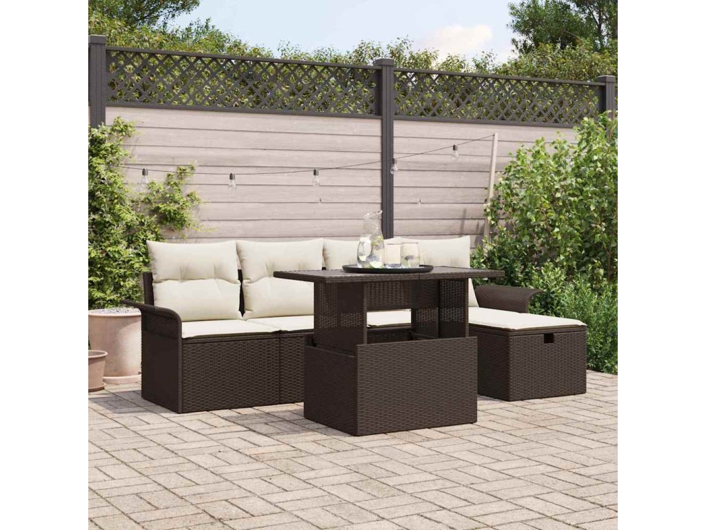 Sada zahradních pohovek s polštářem 6 pcs Hnědá Poly ratan 3360997