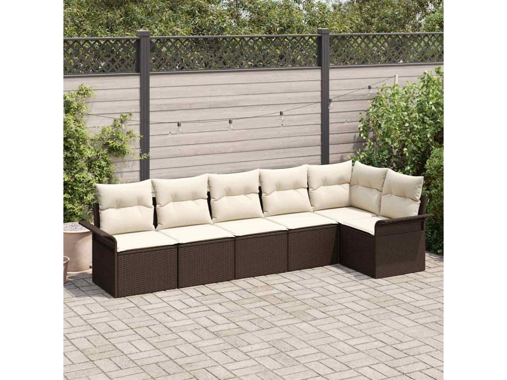 Sada zahradních pohovek s polštářem 6 pcs Hnědá polyratan 3345378