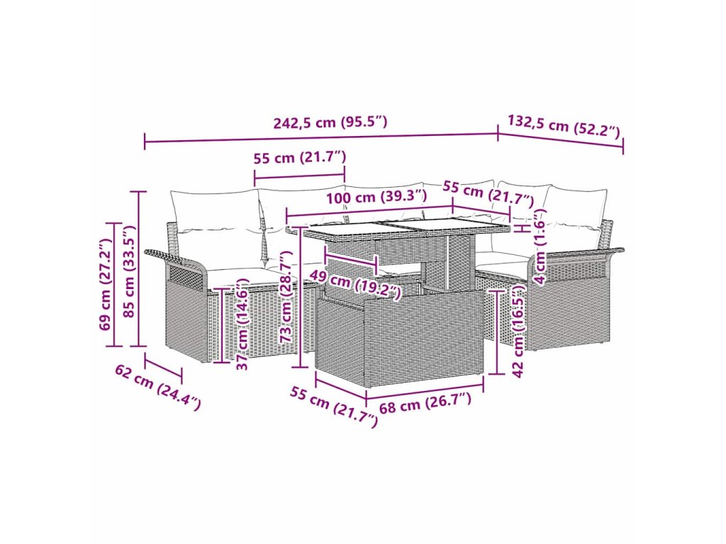 Sada zahradních pohovek s polštářem 6 pcs Hnědá polyratan 3348284