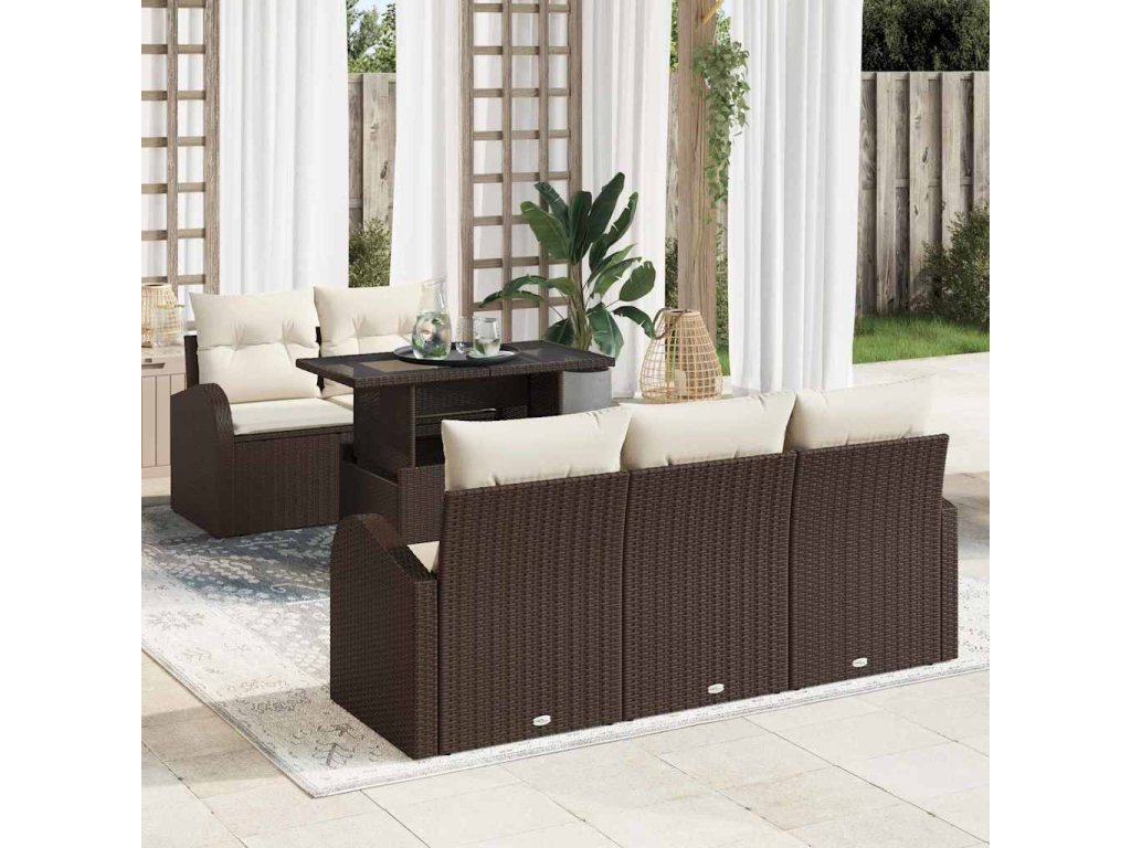Sada zahradních pohovek s polštářem 6 pcs Hnědá polyratan 3348554