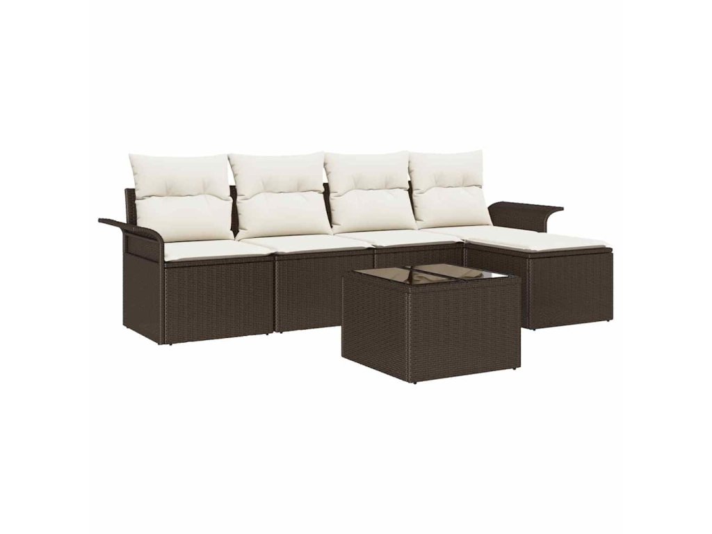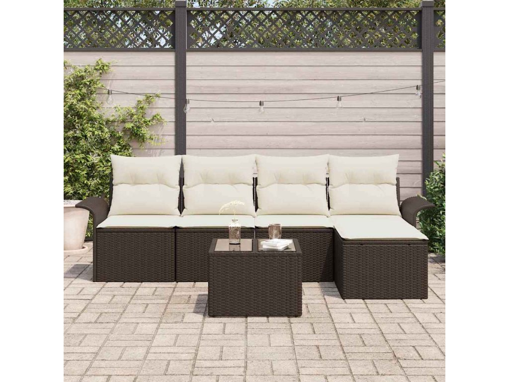 Sada zahradních pohovek s polštářem 6 pcs Hnědá polyratan 3353997