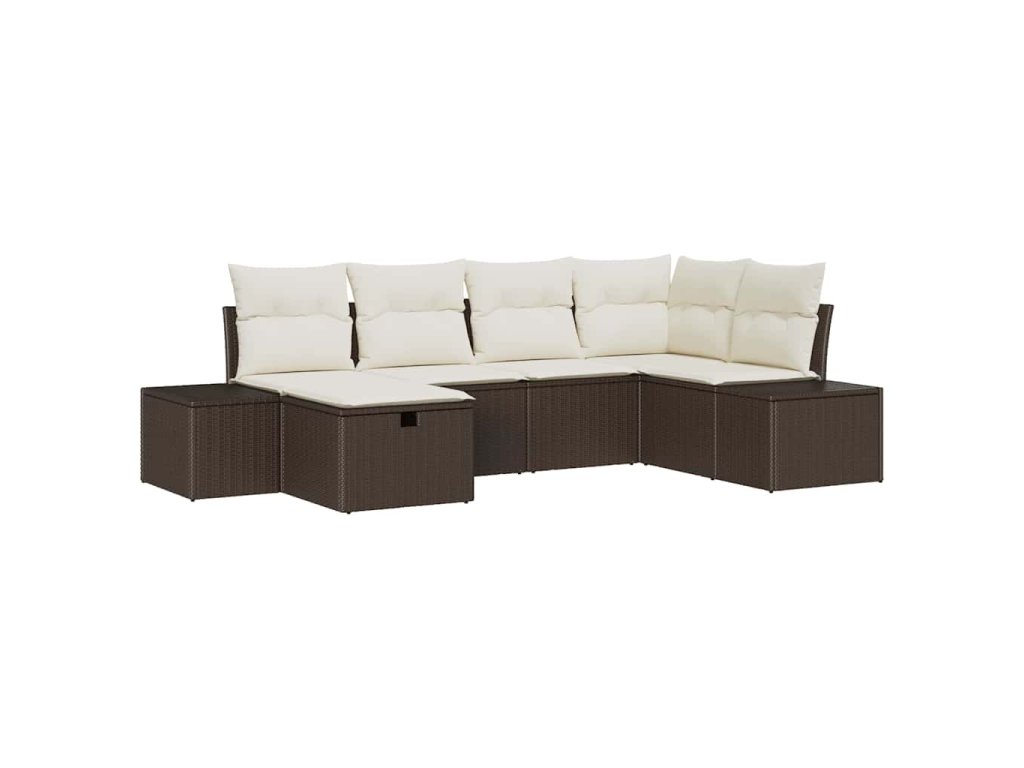 Sada zahradních pohovek s polštářem 6 pcs Hnědá polyratan 3359377
