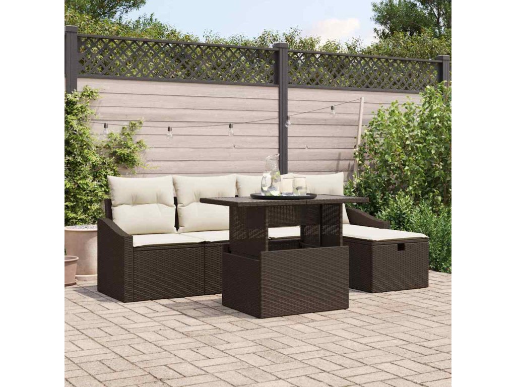 Sada zahradních pohovek s polštářem 6 pcs Hnědá polyratan 3361157