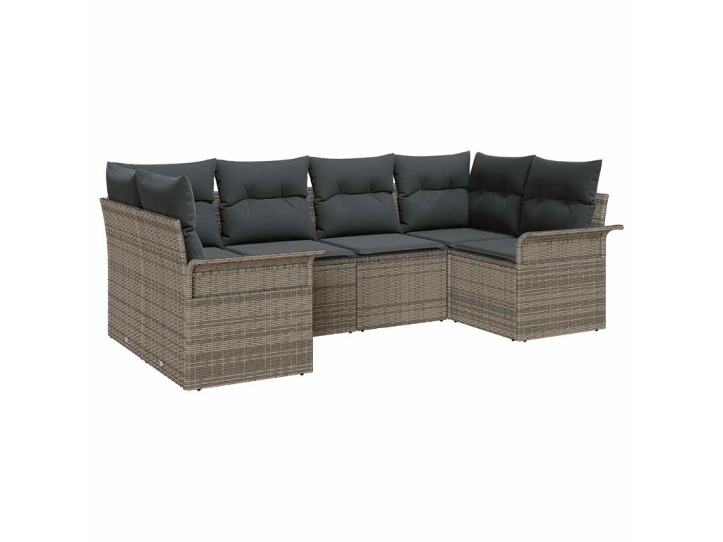 Sada zahradních pohovek s polštářem 6 pcs Šedá Poly ratan 3345499