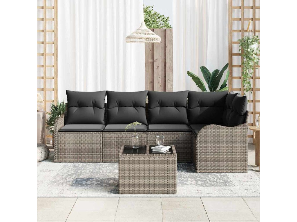 Sada zahradních pohovek s polštářem 6 pcs Šedá Poly ratan 3345709