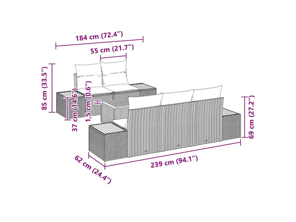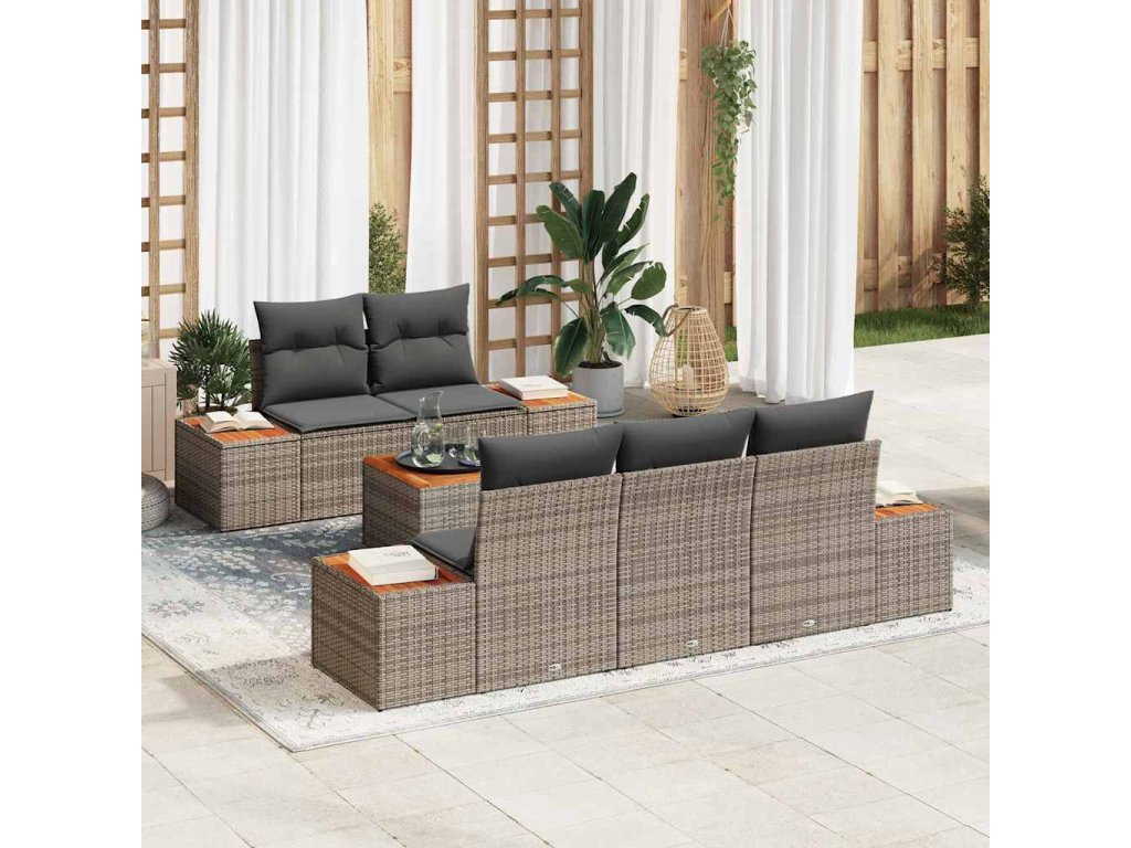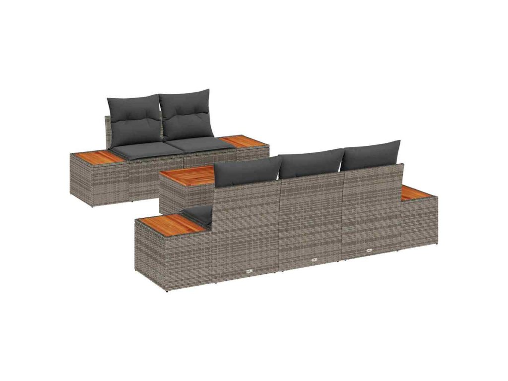 Sada zahradních pohovek s polštářem 6 pcs Šedá Poly ratan 3348025
