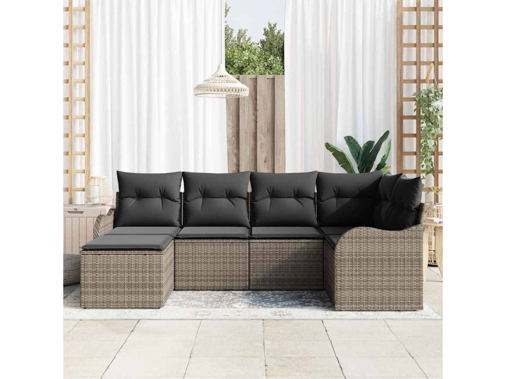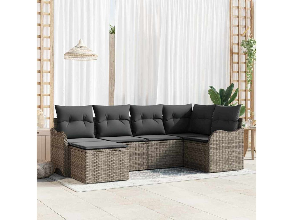 Sada zahradních pohovek s polštářem 6 pcs Šedá Poly ratan 3354438