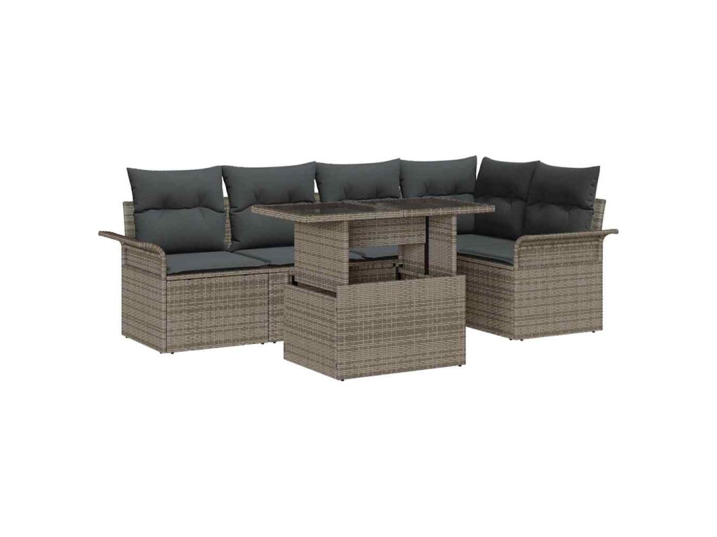 Sada zahradních pohovek s polštářem 6 pcs Šedá Poly Ratan 3357022