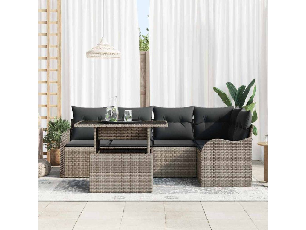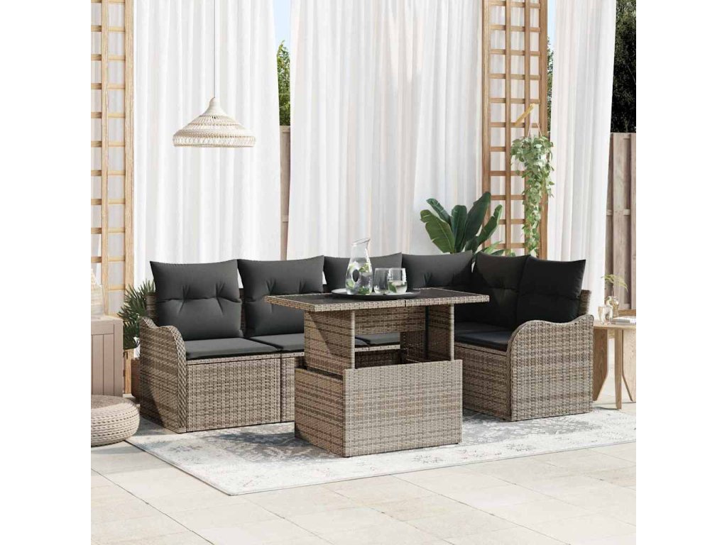 Sada zahradních pohovek s polštářem 6 pcs Šedá Poly Ratan 3357202