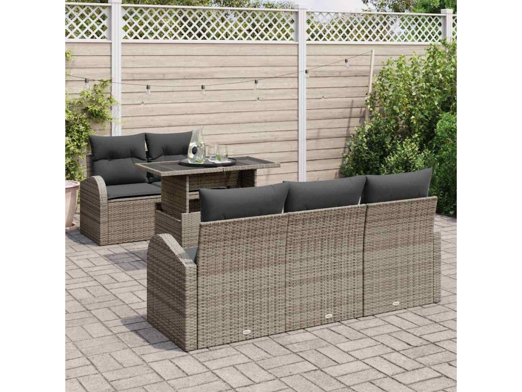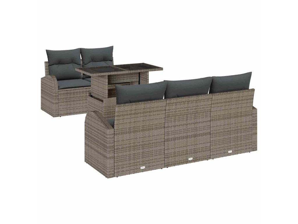 Sada zahradních pohovek s polštářem 6 pcs Šedá Poly Ratan 3357292