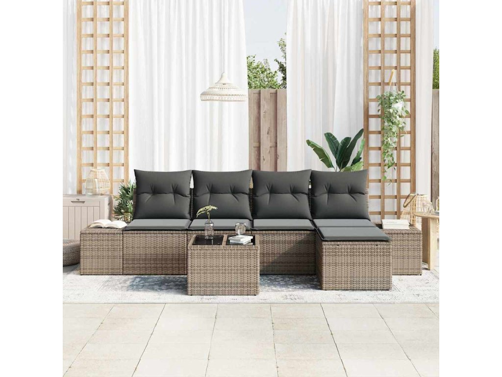 Sada zahradních pohovek s polštářem 6 pcs Šedá polyratan 3347029