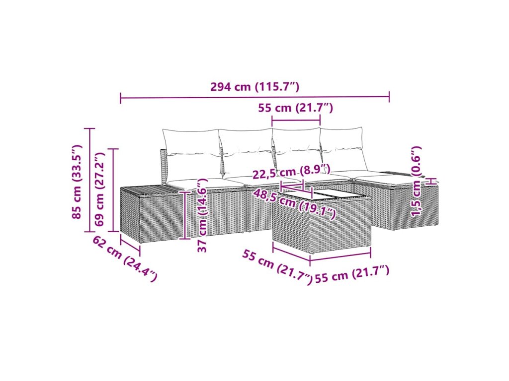 - Robustní konstrukce: Zahradní pohovkový set kombinuje poly ratan s práškově lakovaným ocelovým rámem, což zaručuje odolnost proti povětrnostním vlivům. Materiály byly vybrány tak, aby odolávaly venkovním podmínkám, a zaručují jak styl, tak pevnou oporu pro spolehlivý venkovní nábytek.