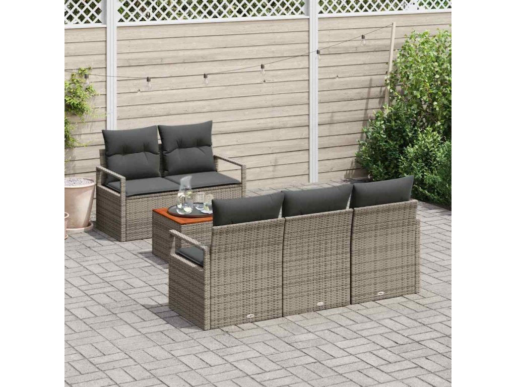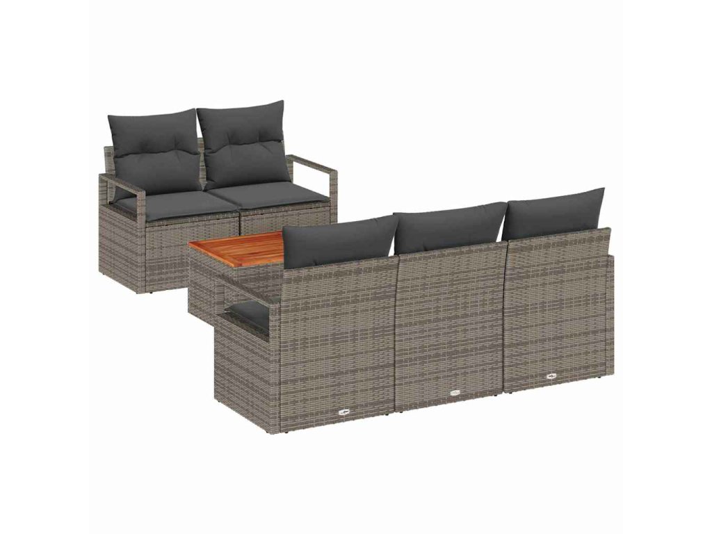 Sada zahradních pohovek s polštářem 6 pcs Šedá polyratan 3347643