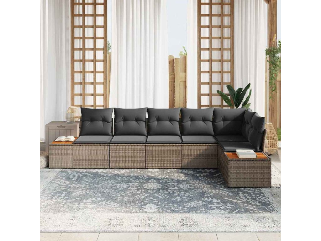 Sada zahradních pohovek s polštářem 6 pcs Šedá polyratan 3348095