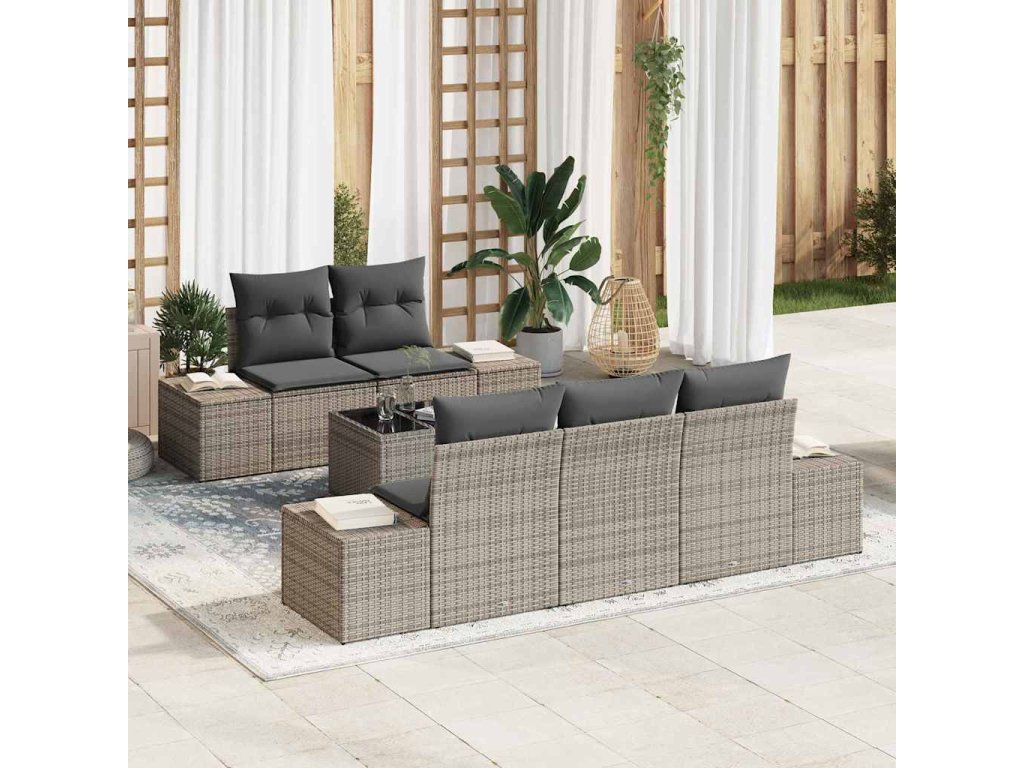 Sada zahradních pohovek s polštářem 6 pcs Šedá polyratan 3355608