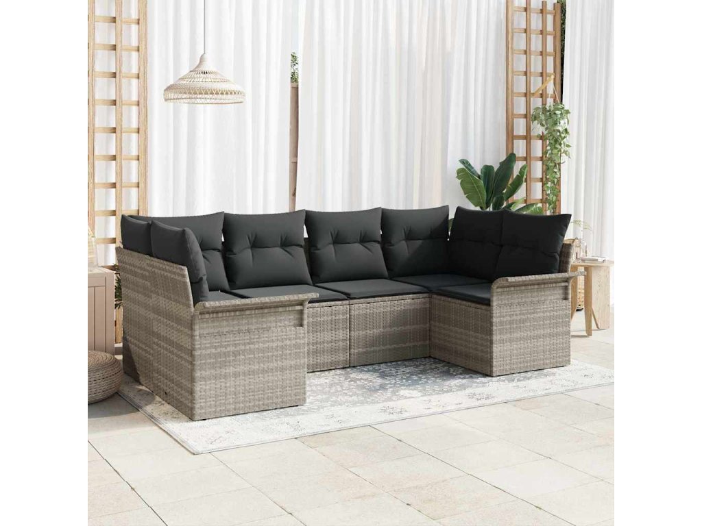 Sada zahradních pohovek s polštářem 6 pcs Světle šedá polyratan 3345502