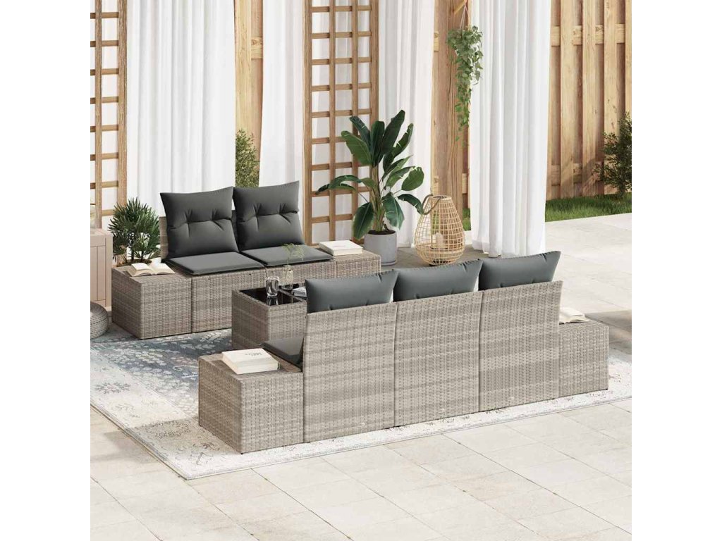 Sada zahradních pohovek s polštářem 6 pcs Světle šedá polyratan 3346942