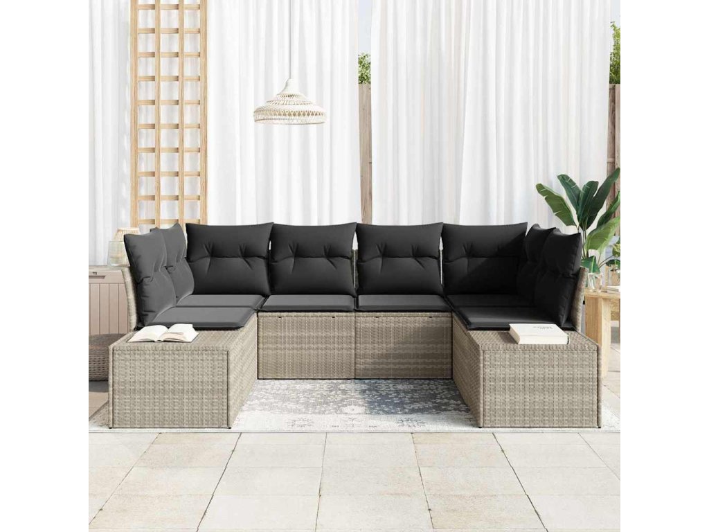 Sada zahradních pohovek s polštářem 6 pcs Světle šedá polyratan 3347202