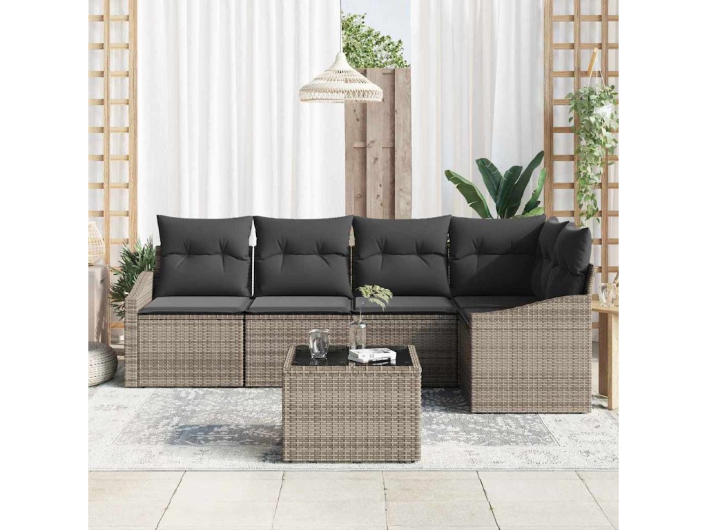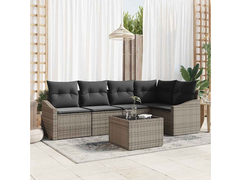Sada zahradních pohovek s polštářem 6 pcs Světle šedá polyratan 3355398