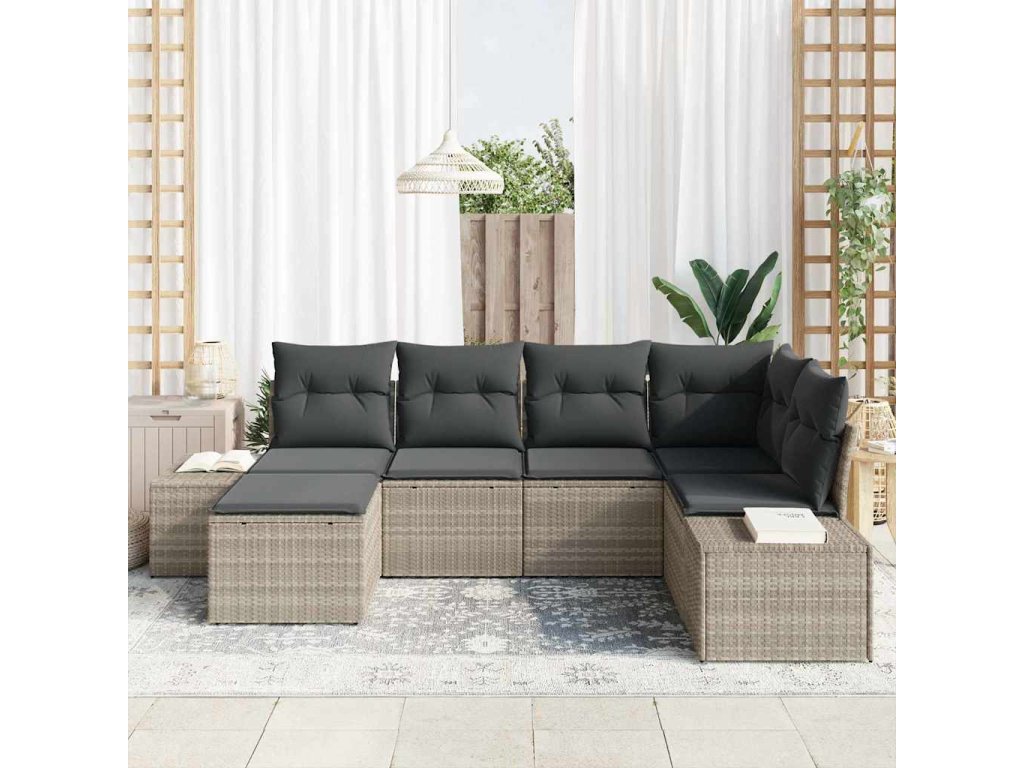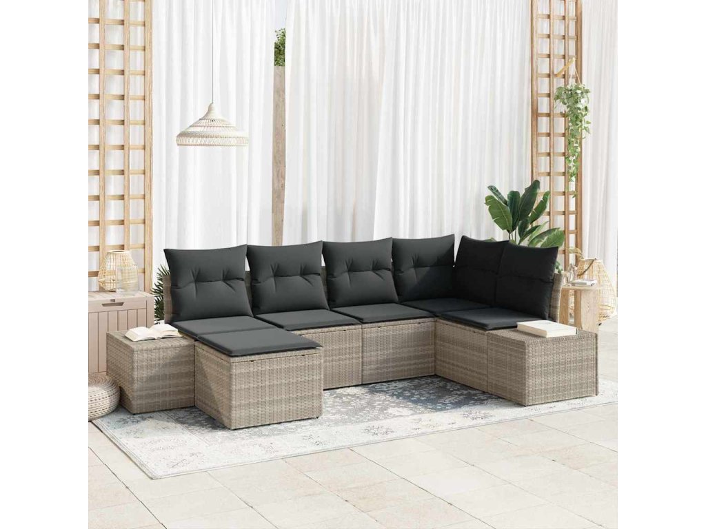 Sada zahradních pohovek s polštářem 6 pcs Světle šedá polyratan 3355801