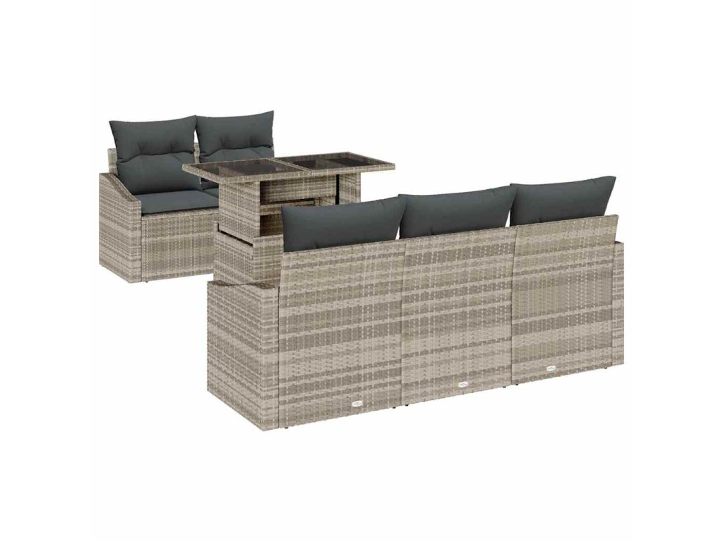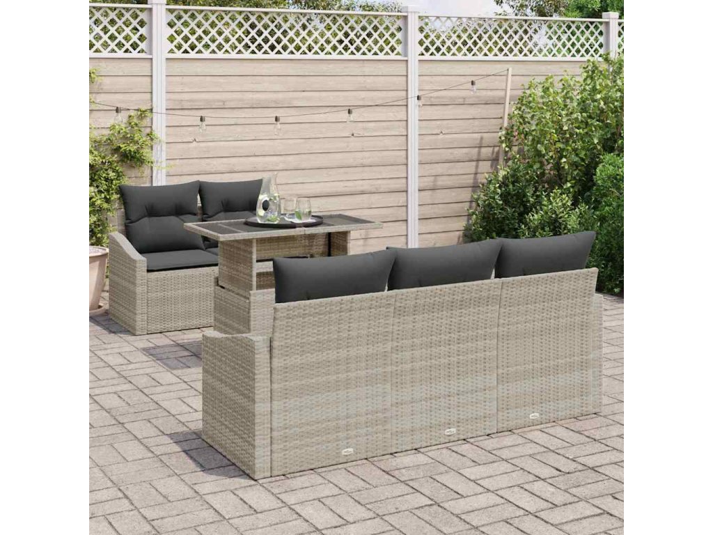 Sada zahradních pohovek s polštářem 6 pcs Světle šedá polyratan 3357655