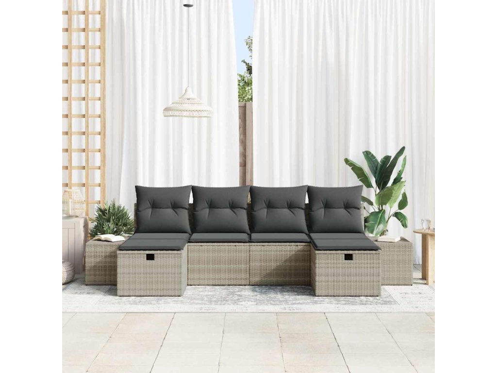 Sada zahradních pohovek s polštářem 6 pcs Světle šedá polyratan 3359421