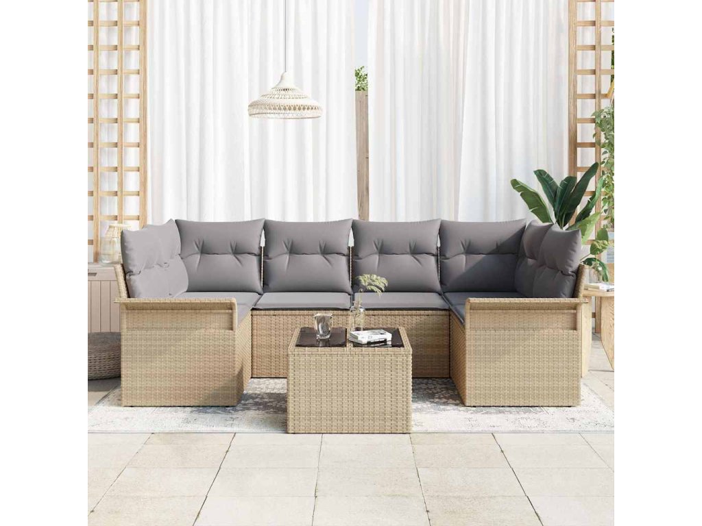 Sada zahradních pohovek s polštářem 7 pcs Beige a šedá 3353929