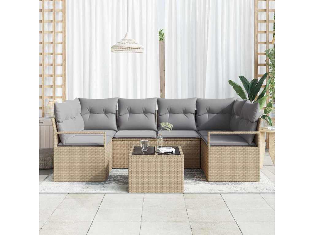 Sada zahradních pohovek s polštářem 7 pcs Beige a šedá 3354949