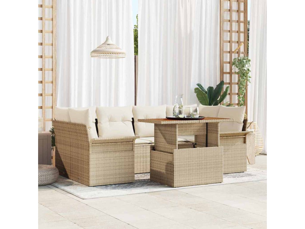 Sada zahradních pohovek s polštářem 7 pcs béžová a krémová 3349287