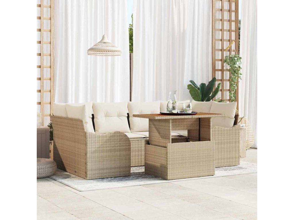 Sada zahradních pohovek s polštářem 7 pcs béžová a krémová 3349413