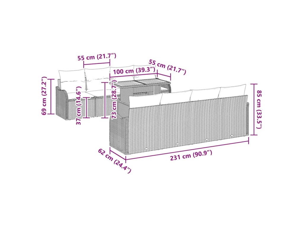 - Funkční komponenty: Obsahuje pohodlné, odolné polštáře navržené pro venkovní použití. Sada zahrnuje dvě sedačky pro dva, čtyři středové sedadla a jeden stůl, takže můžeš snadno měnit uspořádání.