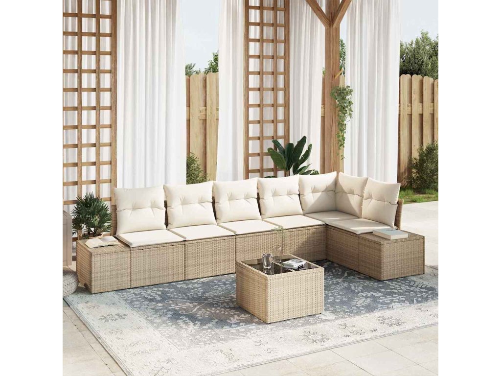 Sada zahradních pohovek s polštářem 7 pcs Béžová a krémová 3355760