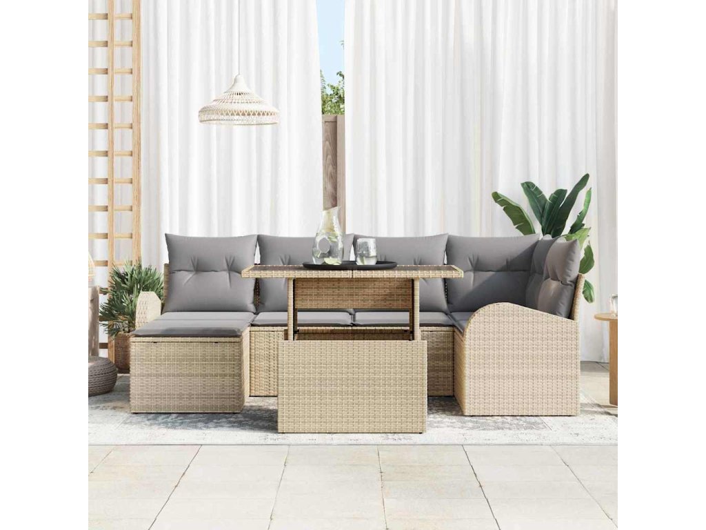 Sada zahradních pohovek s polštářem 7 pcs béžová a světle šedá 3348676