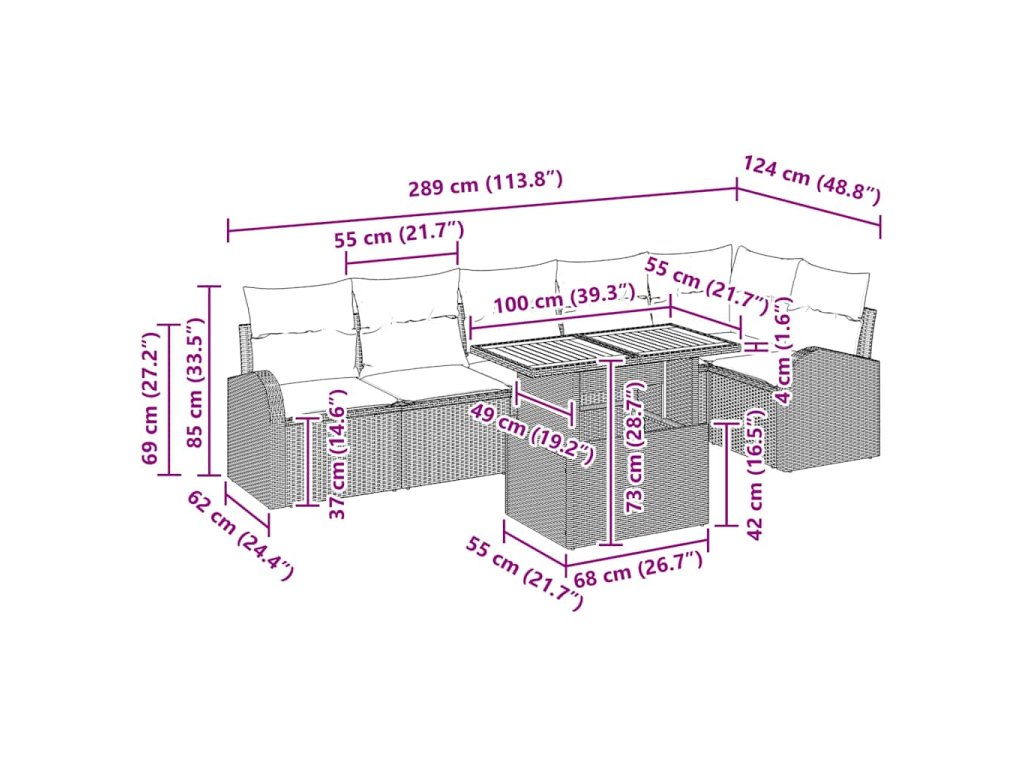 - Tipy na údržbu: O svoji soupravu se starejte zakrytím, když ji nepoužíváte, a otírejte ji vlhkým hadříkem, aby zůstala čistá. Při špatném počasí přeneste polštáře dovnitř, abyste je udrželi v dobrém stavu, takže tahle stylová souprava s vámi vydrží dlouho.