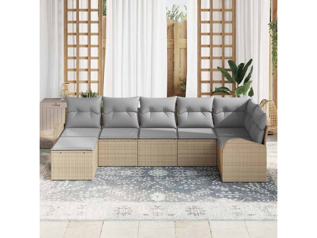 Sada zahradních pohovek s polštářem 7 pcs Béžová Poly ratan 3346130