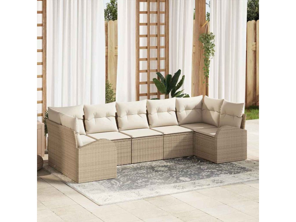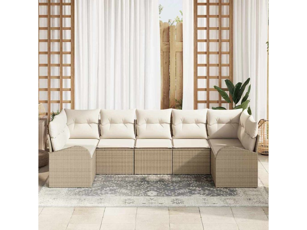 Sada zahradních pohovek s polštářem 7 pcs Béžová Poly Ratan 3346191