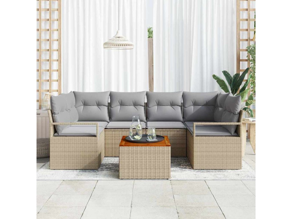 Sada zahradních pohovek s polštářem 7 pcs Béžová Poly ratan 3347658