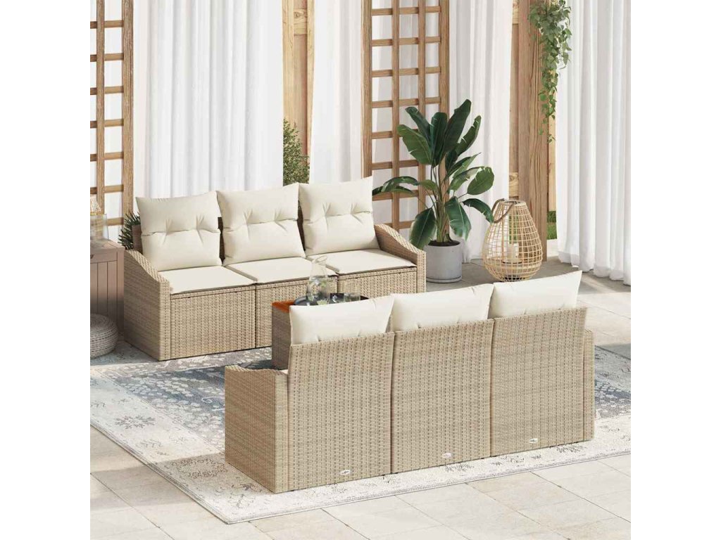 Sada zahradních pohovek s polštářem 7 pcs Béžová Poly ratan 3347778