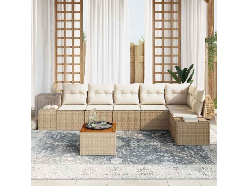 Sada zahradních pohovek s polštářem 7 pcs Béžová Poly ratan 3347967