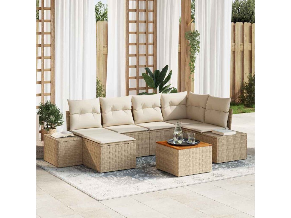 Sada zahradních pohovek s polštářem 7 pcs Béžová Poly ratan 3347981