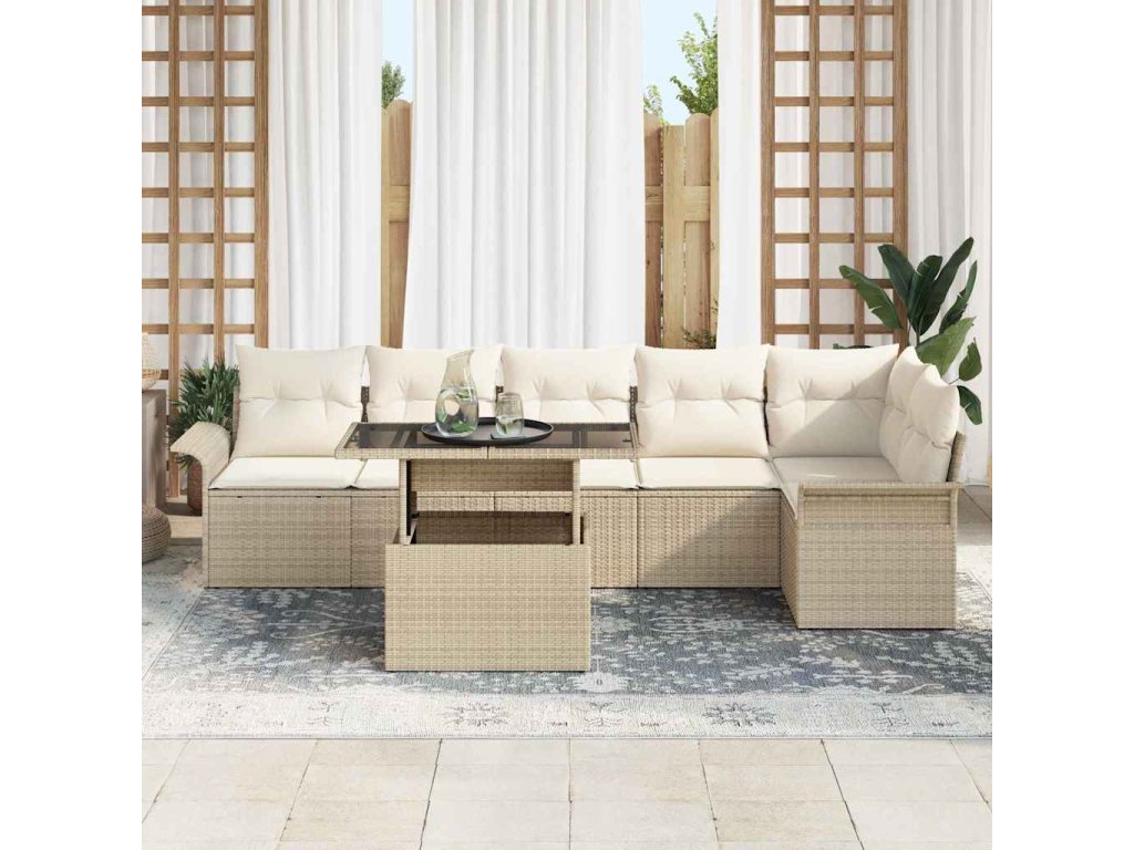 Sada zahradních pohovek s polštářem 7 pcs Béžová Poly ratan 3348297