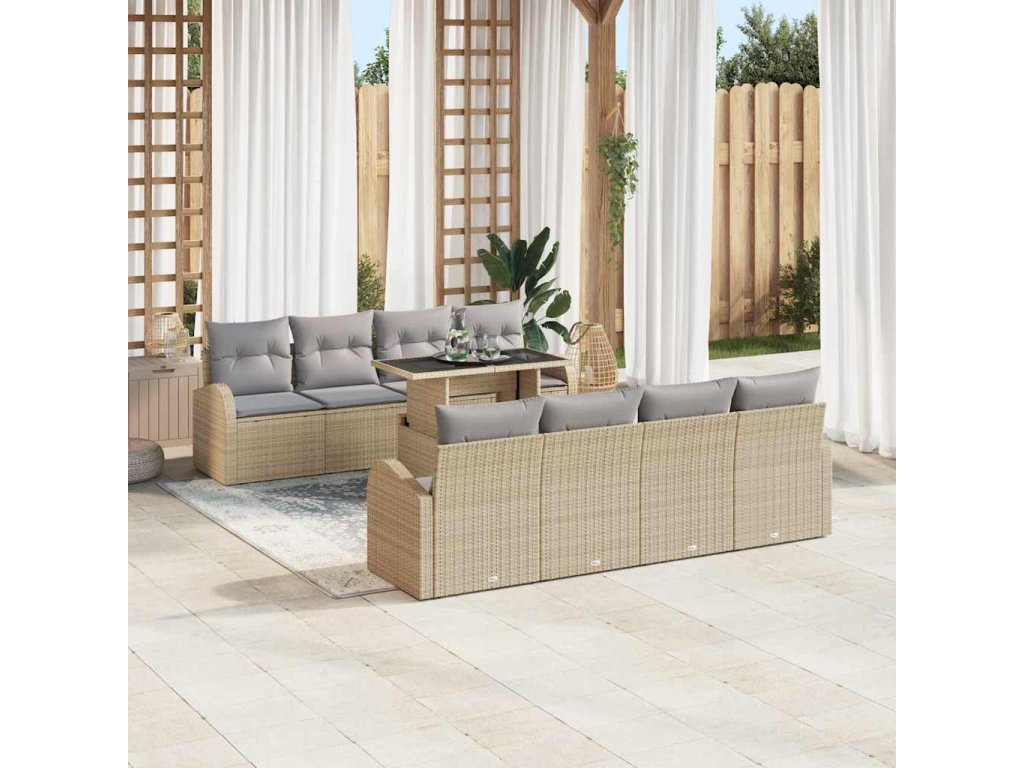 - Pohodlné možnosti úložení Tato souprava vyniká svojí funkčností a nabízí skryté úložné prostory. Ideální pro schování zahradních věcí nebo extra polštářů, když se právě nepoužívá, zajišťuje, že vaše venkovní prostor zůstává organizovaný a stylový.