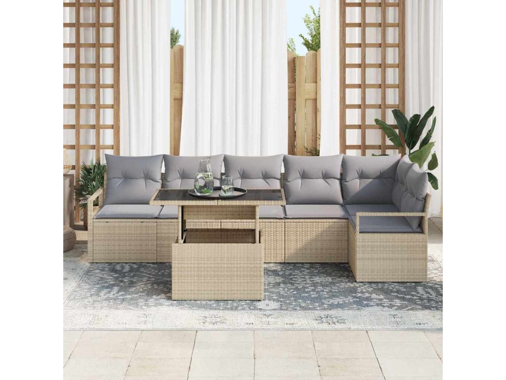 Sada zahradních pohovek s polštářem 7 pcs Béžová Poly ratan 3348836
