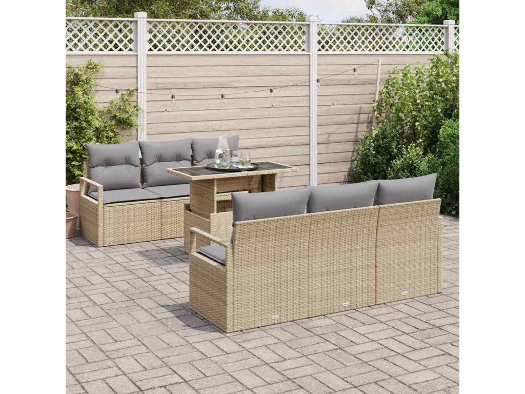 Sada zahradních pohovek s polštářem 7 pcs Béžová Poly ratan 3357483