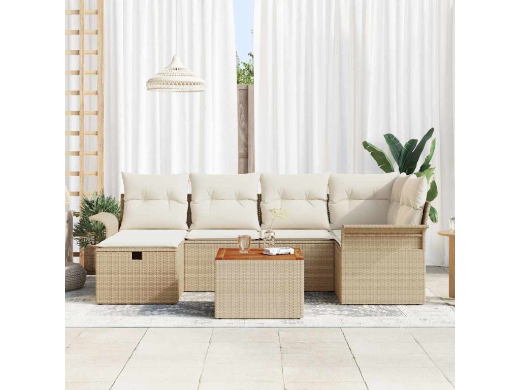 Sada zahradních pohovek s polštářem 7 pcs Béžová Poly ratan 3359456