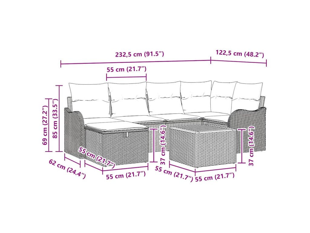 Sada zahradních pohovek s polštářem 7 pcs Béžová Poly ratan 3359483