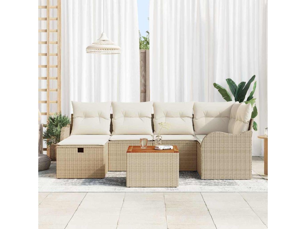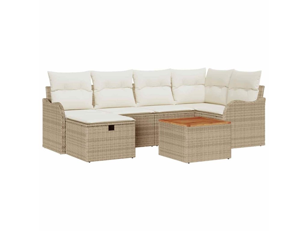 Sada zahradních pohovek s polštářem 7 pcs Béžová Poly ratan 3359484